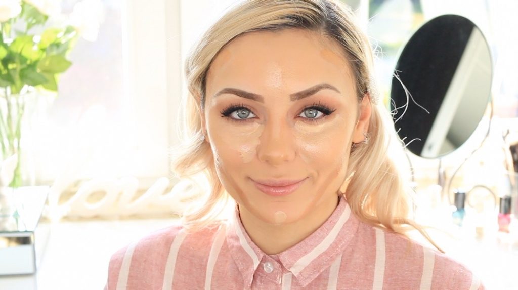 Als erstes beginnst du mit der Grundierung deines Gesichtes. Somit schaffst du eine Basis für dein Make-up. Hierbei ist eine Foundation in einem geigneten Ton sehr wichtig, damit du hierdurch einen natürlichen Look erhältst. Das Produkt soll quasi gar nicht zum Vorschein kommen, jedoch gut abdecken und für ein ebenmäßiges Hautbild sorgen. Um dein rundes Geischt in ein schmales zu verwandeln verwendest du richtigerweise eine Farbnuance, die deinem natürlichen Hautton gleicht.